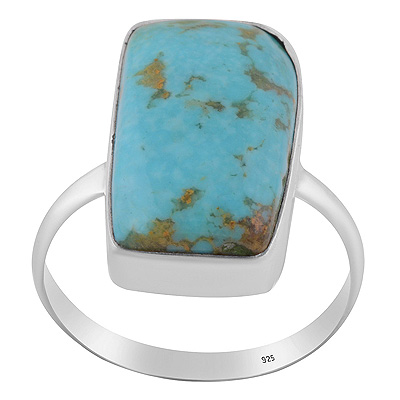 Home | Silver Rings | Cabochon Rings | Plain Collet Natural Arizona Turquoise Rectangle Shape 925 Sterling Solid Silver Ring