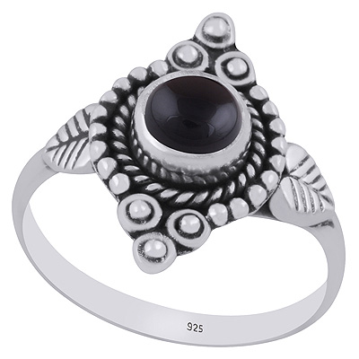 Stunning Twisted Wire & Rawa Work Around Black Onyx Round Shape 925 Sterling Solid Silver Ring