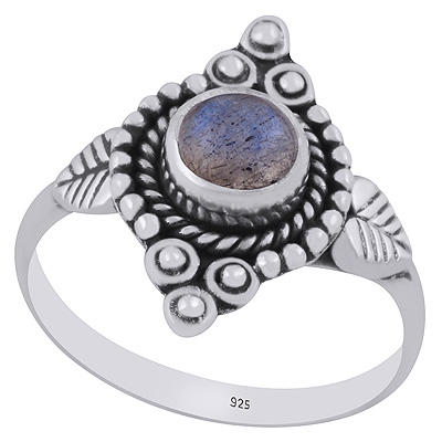 Stunning Twisted Wire & Rawa Work Around Labradorite Round Shape 925 Sterling Solid Silver Ring