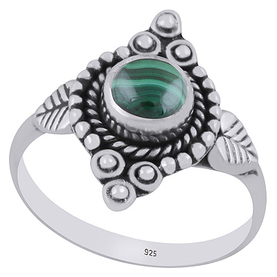 Stunning Twisted Wire & Rawa Work Around Malachite Round Shape 925 Sterling Solid Silver Ring