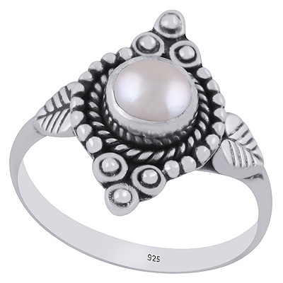 Stunning Twisted Wire & Rawa Work Around Pearl Round Shape 925 Sterling Solid Silver Ring