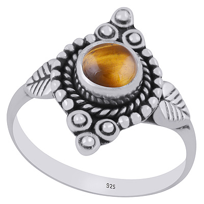 Stunning Twisted Wire & Rawa Work Around Tiger's Eye Round Shape 925 Sterling Solid Silver Ring