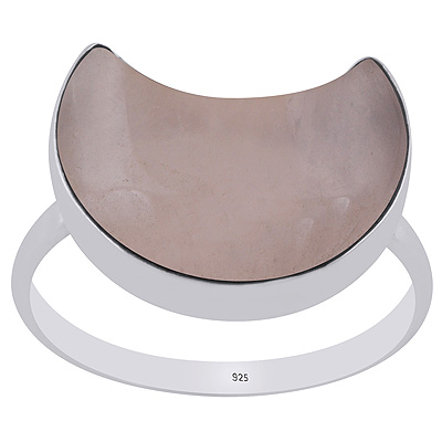 Alluring Crescent Gemstone Rose Quartz Moon Shape 925 Sterling Solid Silver Ring