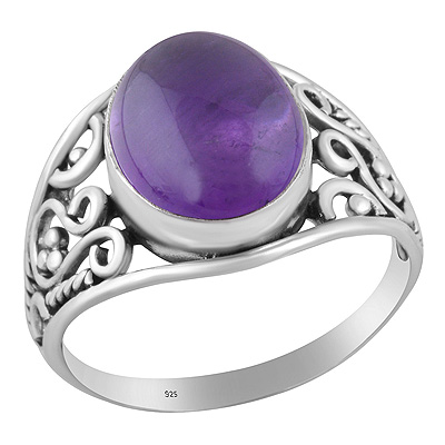 Gorgeous Wire & Rawa Work Around Amethyst Oval Shape 925 Sterling Solid Silver Ring