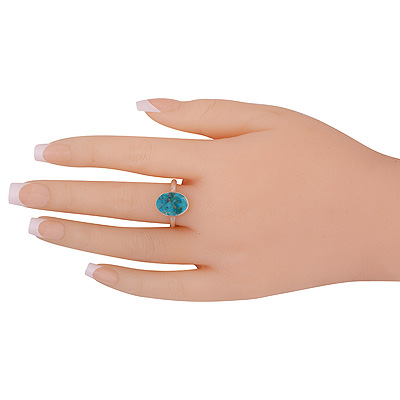 Beautiful Plain Collet Around Peacock Dahlia Copper Turquoise Oval Shape 925 Sterling Solid Silver Ring