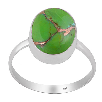 Beautiful Plain Collet Around Oyster Copper Turquoise Oval Shape 925 Sterling Solid Silver Ring
