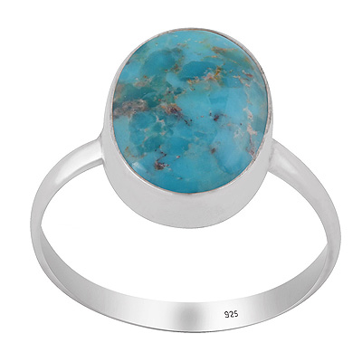 Beautiful Plain Collet Around Blue Copper Turquoise Oval Shape 925 Sterling Solid Silver Ring
