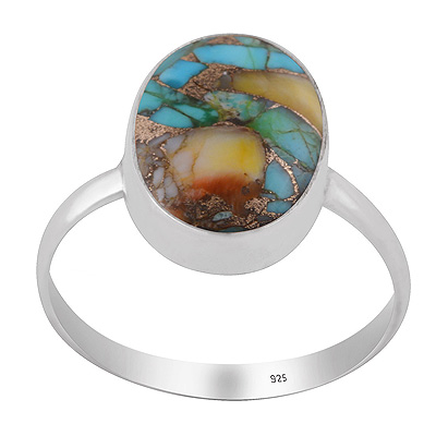 Beautiful Plain Collet Around Peacock Dahlia Copper Turquoise Oval Shape 925 Sterling Solid Silver Ring
