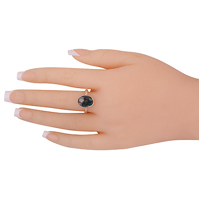 Beautiful Plain Collet Around Black Copper Turquoise Oval Shape 925 Sterling Solid Silver Ring
