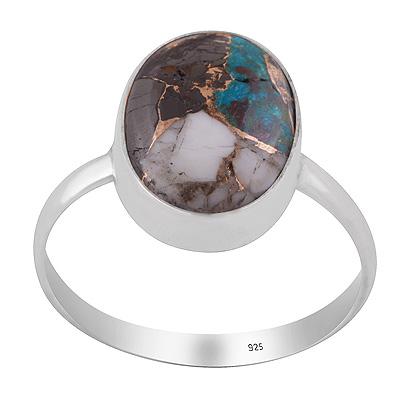 Beautiful Plain Collet Around Peacock Dahlia Copper Turquoise Oval Shape 925 Sterling Solid Silver Ring