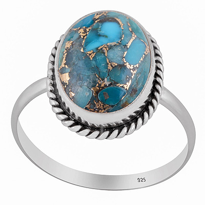 Authentic Wire Work Around Oyster Copper Turquoise Oval Shape 925 Sterling Solid Silver Ring