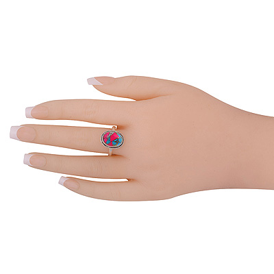 Authentic Wire Work Around Pink Dahlia Copper Turquoise Oval Shape 925 Sterling Solid Silver Ring