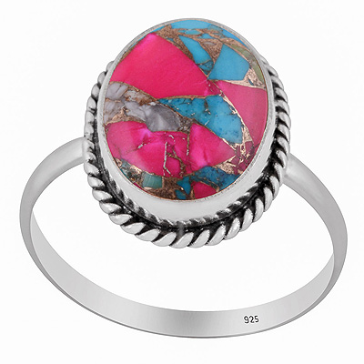 Authentic Wire Work Around Cotton Candy Copper Turquoise Oval Shape 925 Sterling Solid Silver Ring