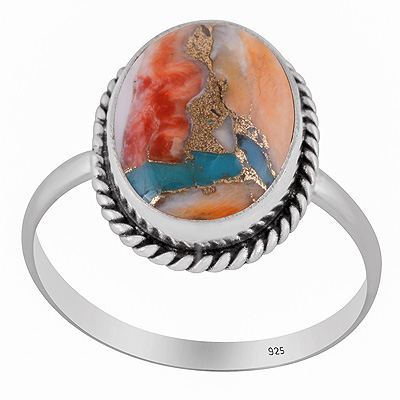 Authentic Wire Work Around Coral Mohave Oval Shape 925 Sterling Solid Silver Ring