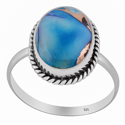 Authentic Wire Work Around Oyster Copper Turquoise Oval Shape 925 Sterling Solid Silver Ring