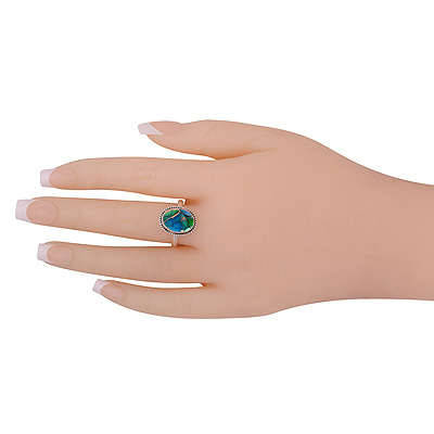 Authentic Wire Work Around Peacock Dahlia Copper Turquoise Oval Shape 925 Sterling Solid Silver Ring