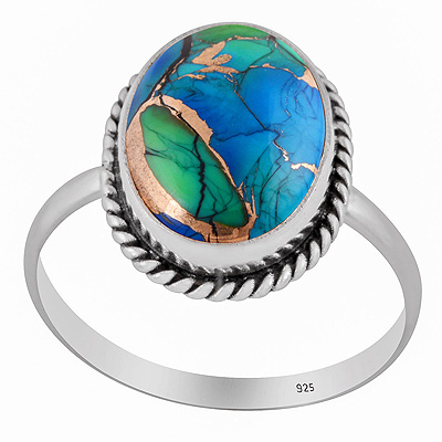Authentic Wire Work Around Oyster Copper Turquoise Oval Shape 925 Sterling Solid Silver Ring
