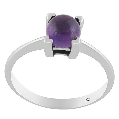 Home | Silver Rings | Cabochon Rings | Stunning Prong Setting Around Amethyst Round Shape 925 Sterling Solid Silver Ring