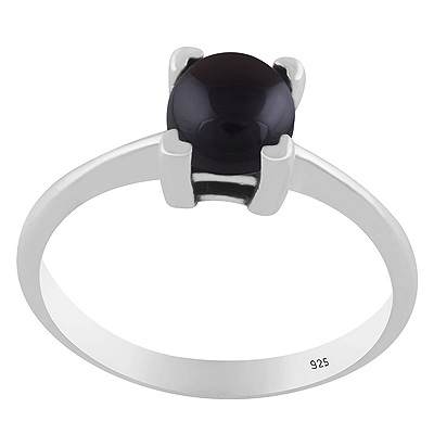 Stunning Prong Setting Around Black Onyx Round Shape 925 Sterling Solid Silver Ring