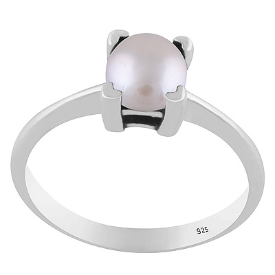 Stunning Prong Setting Around Pearl Round Shape 925 Sterling Solid Silver Ring