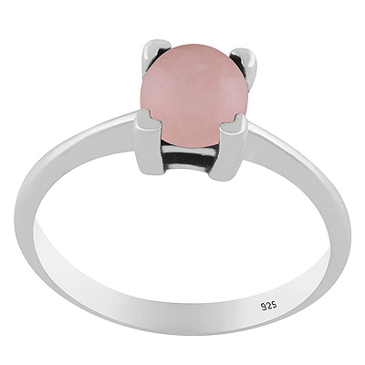 Stunning Prong Setting Around Rose Quartz Round Shape 925 Sterling Solid Silver Ring