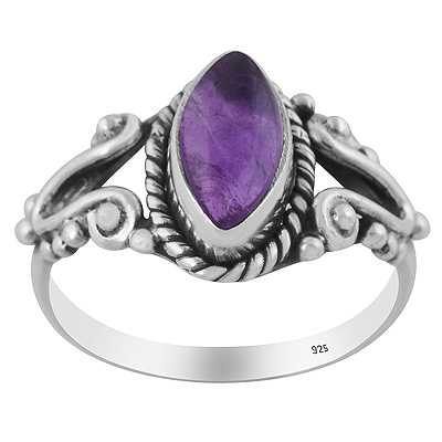 Stunning Rawa & Twisted Wire Work Around Amethyst Marquise Shape 925 Sterling Solid Silver Ring