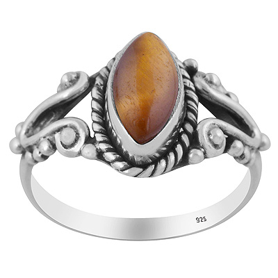 Stunning Rawa & Twisted Wire Work Around Tiger's Eye Marquise Shape 925 Sterling Solid Silver Ring