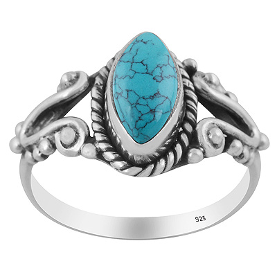 Stunning Rawa & Twisted Wire Work Around Turquoise Marquise Shape 925 Sterling Solid Silver Ring