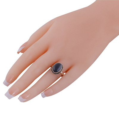 Home | Silver Rings | Cabochon Rings | Classic Rawa Work Around Black Onyx Oval Shape 925 Sterling Solid Silver Ring