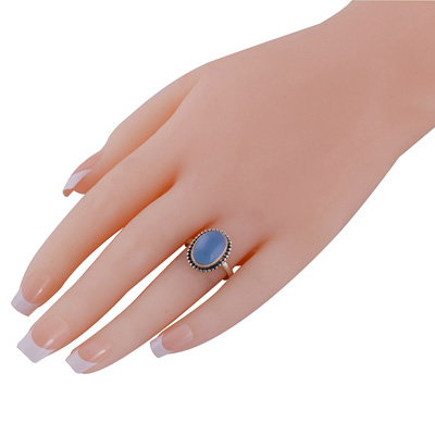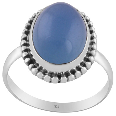 Home | Silver Rings | Cabochon Rings | Classic Rawa Work Around Blue Chalcedony Oval Shape 925 Sterling Solid Silver Ring