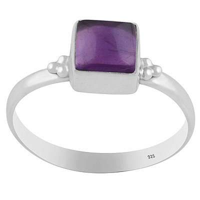 Minimal Rawa Work Around Amethyst Square Shape 925 Sterling Solid Silver Ring