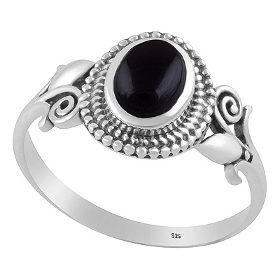Gorgeous Flower Shank w/ Rawa Pattern Around Black Onyx Oval Shape 925 Sterling Solid Silver Ring