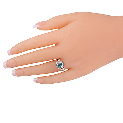 Gorgeous Flower Shank w/ Rawa Pattern Around Green Onyx Oval Shape 925 Sterling Solid Silver Ring