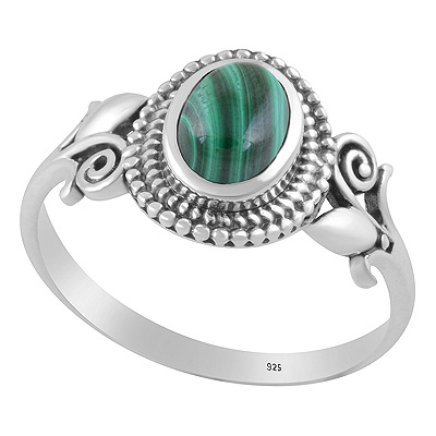 Gorgeous Flower Shank w/ Rawa Pattern Around Malachite Oval Shape 925 Sterling Solid Silver Ring