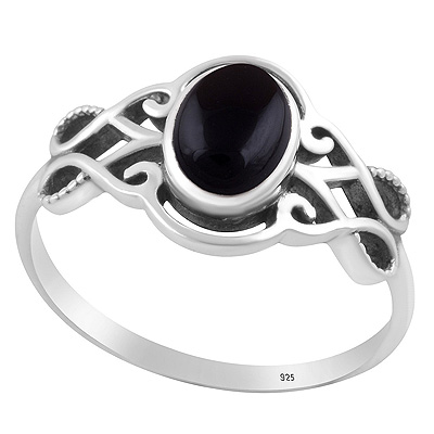 Beautiful Handcrafted Pattern Around Black Onyx Oval Shape 925 Sterling Solid Silver Ring
