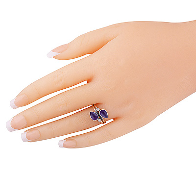 Stunning Multiple Gemstones Lapis,White Cubic Zirconia Pear,Round Shape 925 Sterling Solid Silver Ring