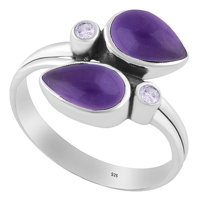 Stunning Multiple Gemstones Amethyst,White Cubic Zirconia Pear,Round Shape 925 Sterling Solid Silver Ring