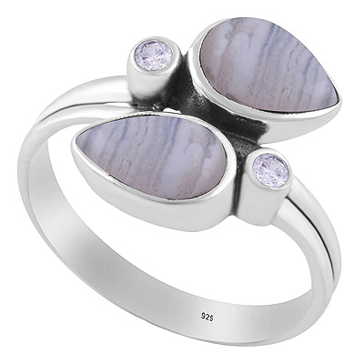 GEMSTONES: Blue Lace Agate,White Cubic Zirconia