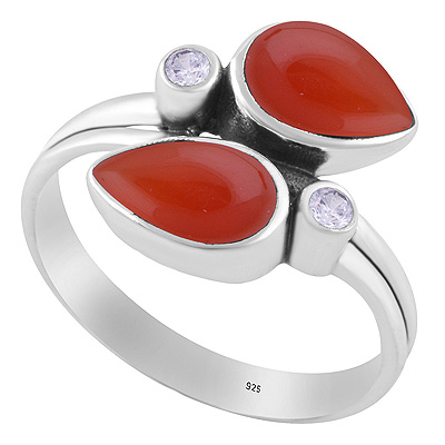 Stunning Multiple Gemstones Carnelian,White Cubic Zirconia Pear,Round Shape 925 Sterling Solid Silver Ring