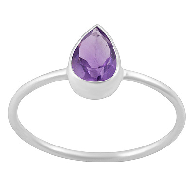 Home | Silver Rings | Cut Stone Rings | Gorgeous Plain Amethyst Pear Shape 925 Sterling Solid Silver Ring