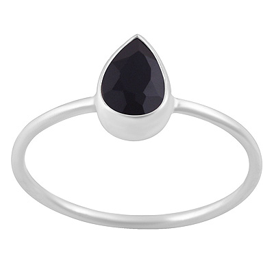 Home | Silver Rings | Cut Stone Rings | Gorgeous Plain Black Onyx Pear Shape 925 Sterling Solid Silver Ring