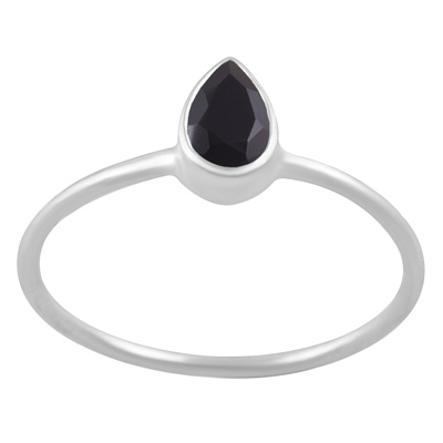 Minimal Gorgeous Black Onyx Pear Shape 925 Sterling Solid Silver Ring