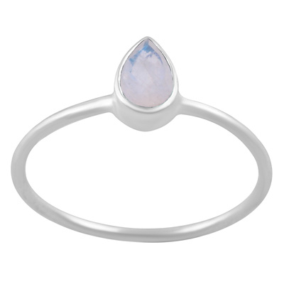 Minimal Gorgeous Rainbow Moonstone Pear Shape 925 Sterling Solid Silver Ring