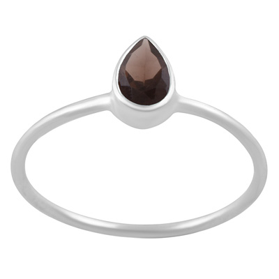 Minimal Gorgeous Smoky Topaz Pear Shape 925 Sterling Solid Silver Ring