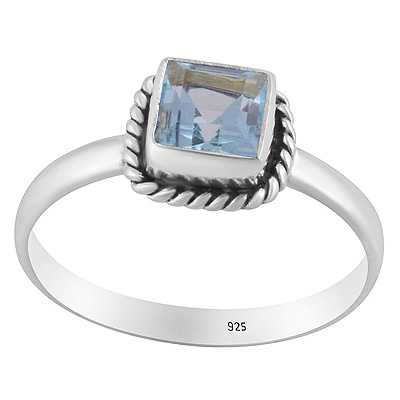Handcrafted Wire Work Around Blue Topaz Square Shape 925 Sterling Solid Silver Ring