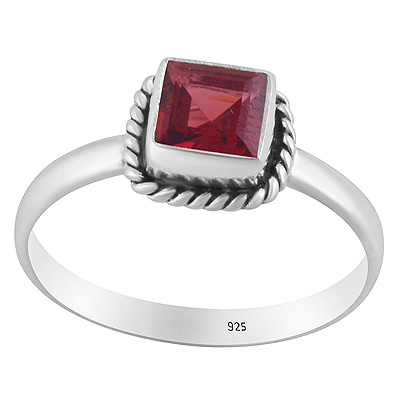 Handcrafted Wire Work Around Garnet Square Shape 925 Sterling Solid Silver Ring