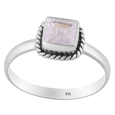 Handcrafted Wire Work Around White Cubic Zirconia Square Shape 925 Sterling Solid Silver Ring
