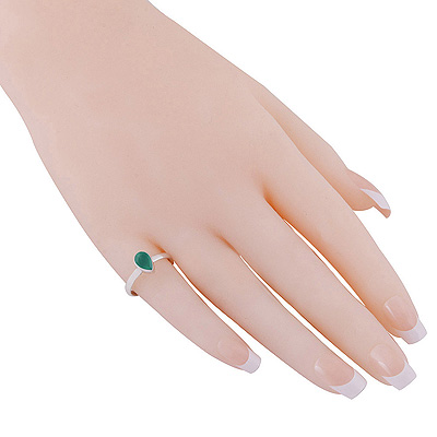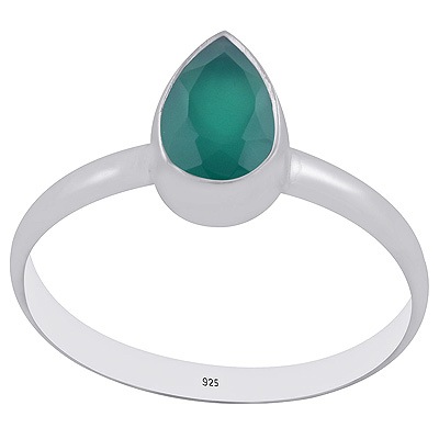 Beautiful Plain Green Onyx Pear Shape 925 Sterling Solid Silver Ring