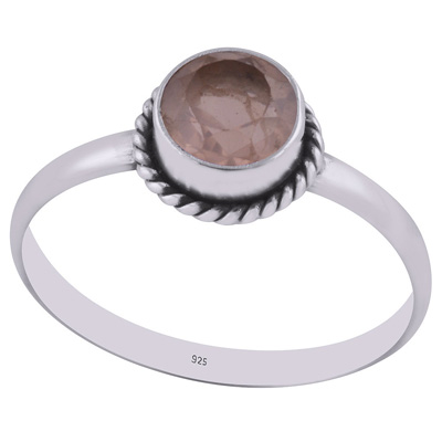 Beautiful Wire Work Around Smoky Topaz Round Shape 925 Sterling Solid Silver Ring