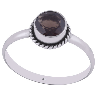 Beautiful Wire Work Around Smoky Topaz Round Shape 925 Sterling Solid Silver Ring